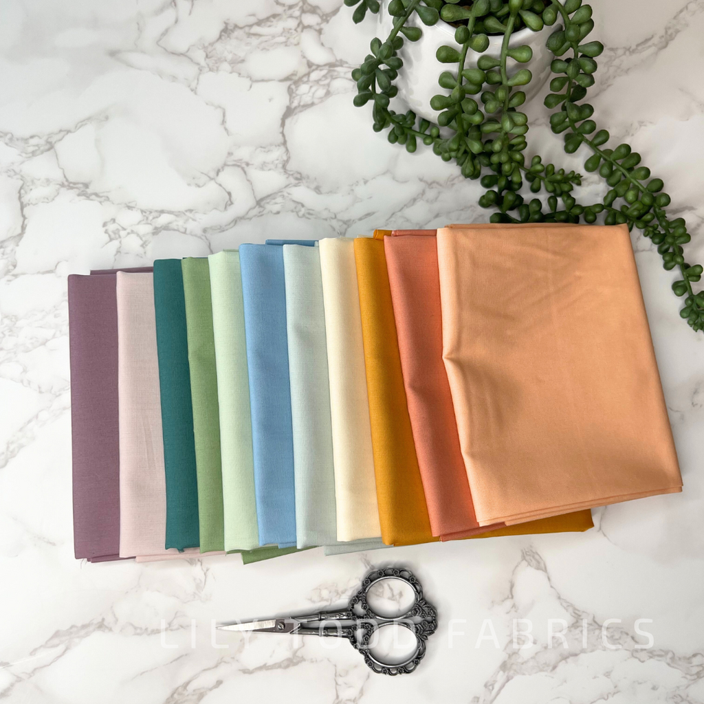 Curated bundle of solids that compliment the Slow Summer collection by Suzy Q for Art Gallery Fabrics.