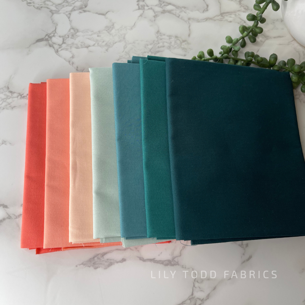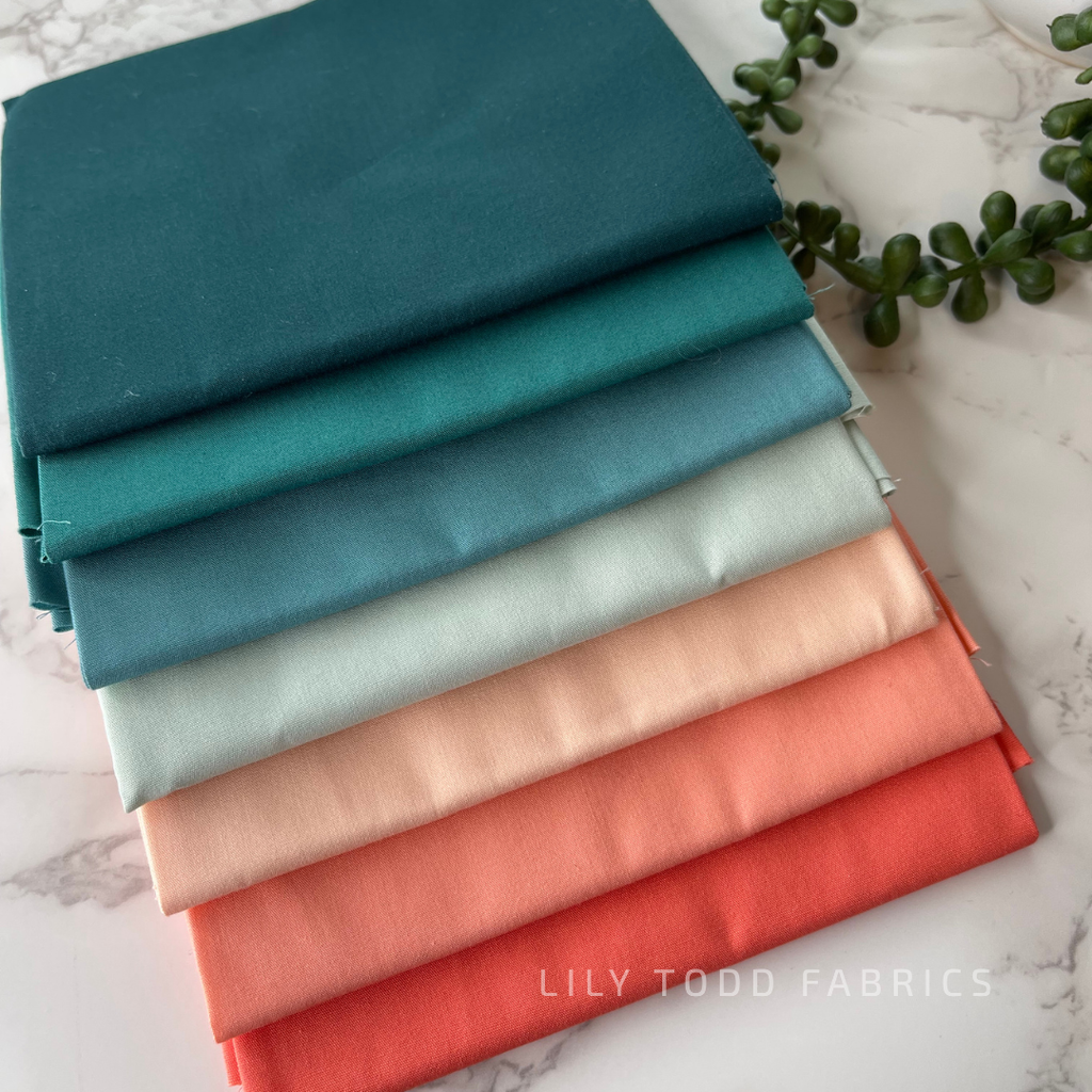Curated bundle of seven solids using Art Gallery Fabrics PURE Solids that would work with the Stillwater collection from AGF.